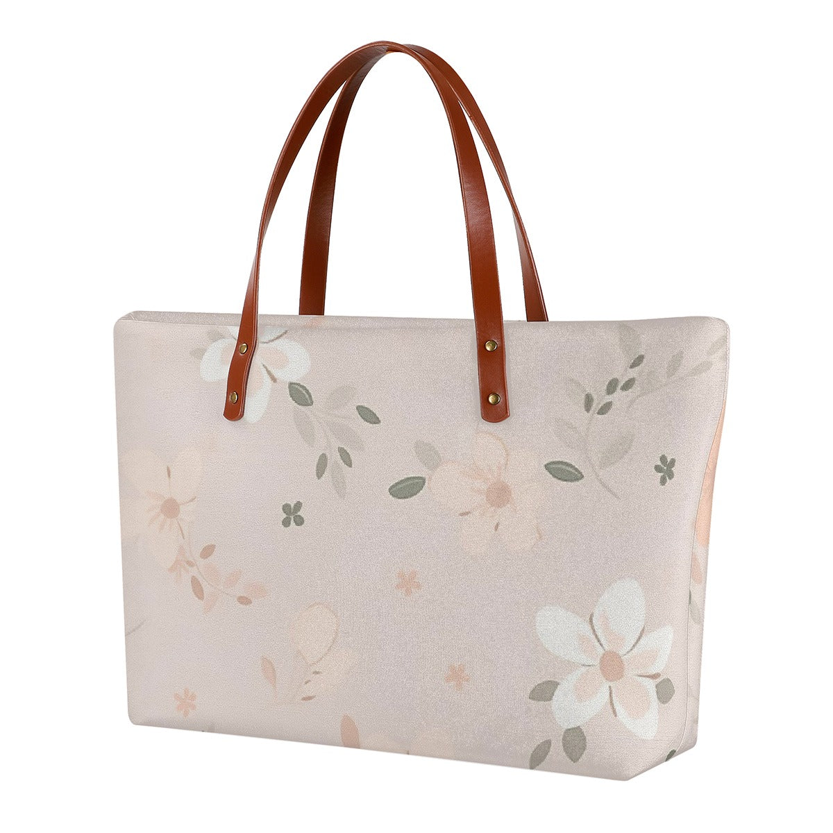 Beautiful handpainted watercolor design in soothing pale greens and shades of apricot.