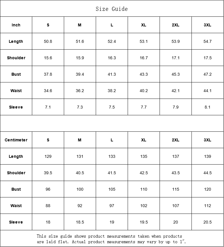 | Centimeter | S | M | L | XL | 2XL | 3XL |